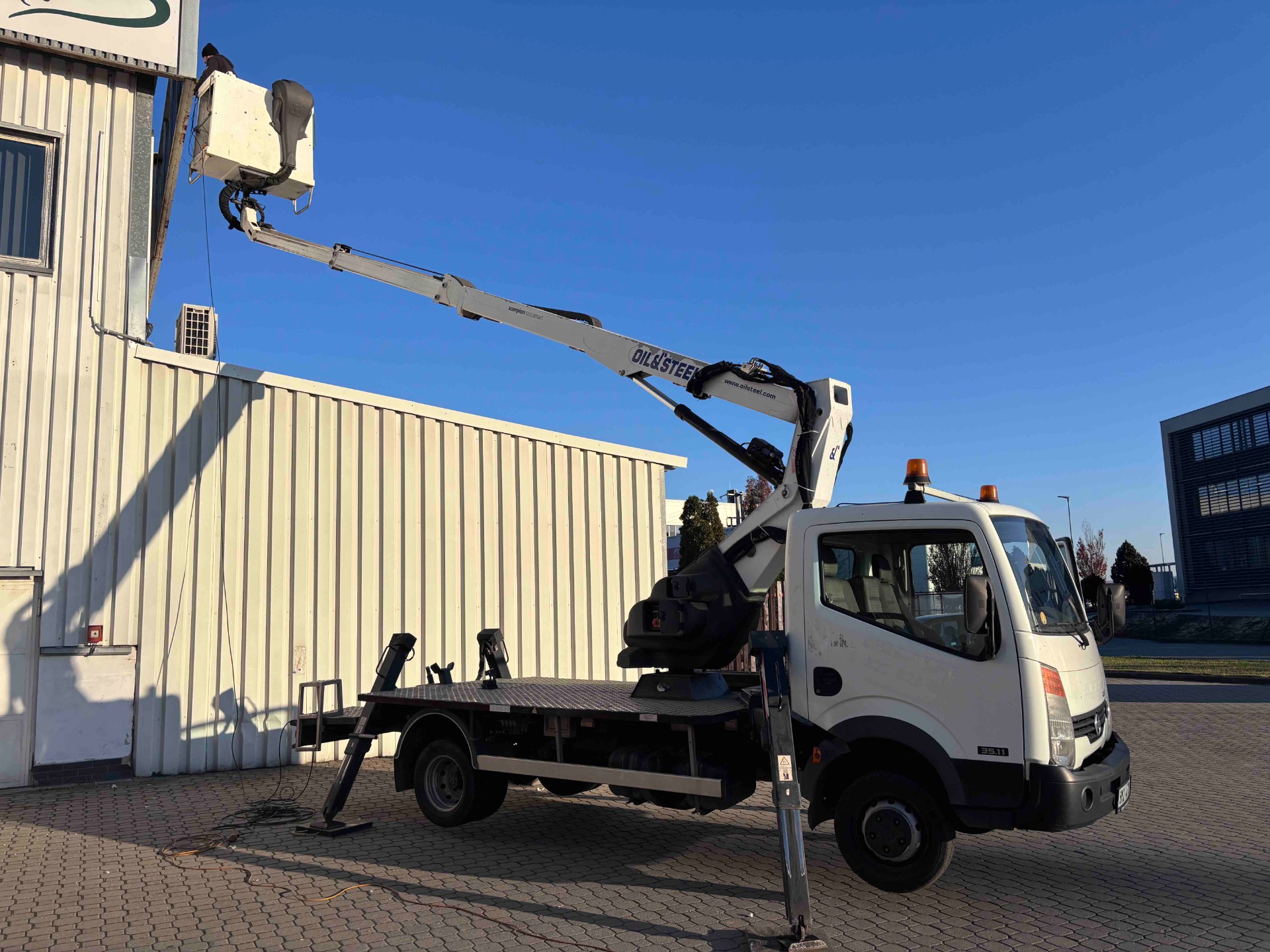 Nabízíme pronájem vysokozdvižných plošin do výšky 18 m na podvozku Nissan Cabstar do 3,5 t. S našimi službami získáte spolehlivého a výkonného partnera pro Vaše stavební či jiné pracovní potřeby.